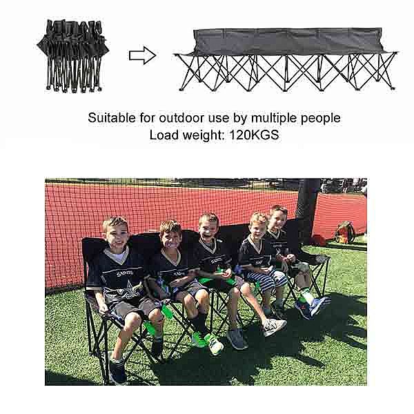 - 다인용 의자는 날씨와 장소에 관계없이 모든 기후(전천후 사용)에서 사용할 수 있습니다. 좌석의 강한 옥스포드 패브릭 소재는 방수 및 긴 내구성으로 찢어지지 않습니다. 따라서 실내 또는 실외 스포츠 센터에 배치할 수 있습니다.