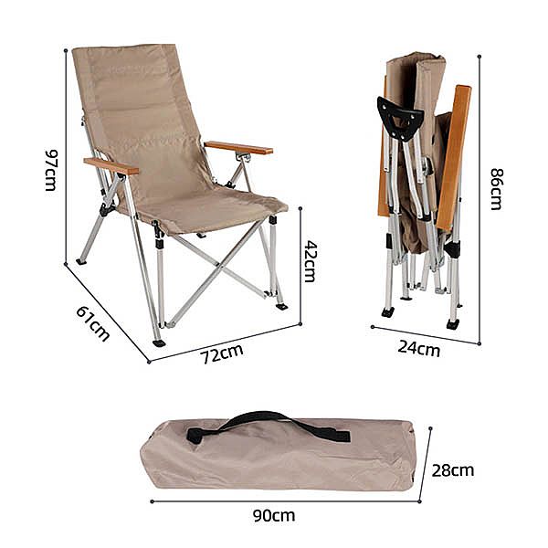 이 접이식 캠핑 의자는 금속 요소 프레임과 옥스포드 소재를 사용합니다. 의자 등받이가 조정됩니다. 의자의 열린 크기는 72x61x78-97cm(28.35"X24" X30.7-38.2")입니다. 접힌 크기는 96 x 28cm(11" x 11" x 37.5")입니다. 상품 무게는 4.8kg(10.5lbs)입니다.