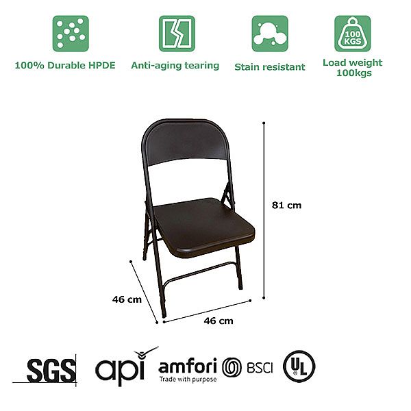대부분의 사람들에게 적합한 46x46x81cm 크기의 의자; RV 여행을 좋아한다면 RV에 포장할 수 있지만 매우 작은 공간에서는 둥근 모서리가 아이들이 놀고 있는 동안 실수로 의자 뒤쪽에 부딪히는 것을 방지할 수 있습니다. 구석에 앉으면 앉을 때 구매자의 편안함이 향상됩니다 , 다리의 각도는 의자를 더 강하고 안정적으로 만듭니다. 의자 표면에 안전하고 환경 친화적 인 녹슬지 않는 코팅 층을 코팅했으며 정상적인 사용시 제품이 녹슬지 않습니다.